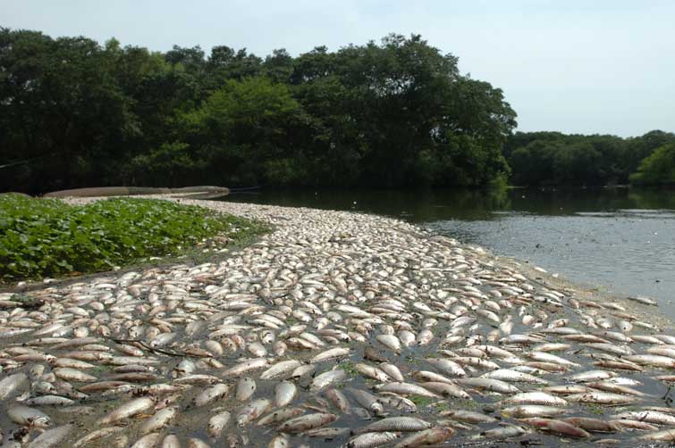 Isso porque, segundo a Promotoria de Meio Ambiente, a última mortandade de peixes, ocorrida em dezembro de 2010, entre Sapiranga e São Leopoldo, esteve diretamente ligada ao lançamento irregular de efluentes industriais de três empresas localizadas entre Três Coroas e Taquara. Isso demonstra que, se dependesse apenas da sua nascente, o rio já teria sido extinto há muito tempo. O que garante a sobrevida do Sinos é uma transposição feita na região de Canela, onde o sistema de barragens do Salto, Canastra e Bugres, no rio Santa Cruz, alimenta o Sinos com água do rio Caí através do rio Paranhana.