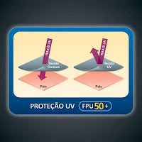 Poliéster protege mais que algodão: se for branco, o FPU é 16. Se for vermelho, 29. Preto, 34. Roupas desse material são encontradas em lojas esportivas, pois são levinhas e absorvem o suor.